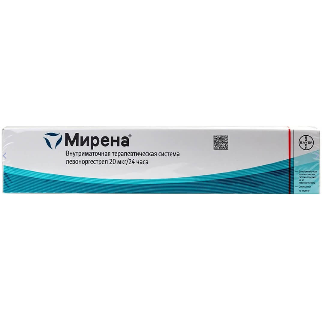 Мирена — внутриматочный контрацептив. Представляет собой Т-образную эластомерную систему (устройство), вертикальный стержень которой состоит из левоноргестрелсодержащего контейнера, покрытого специальной мембраной, через которую непрерывно происходит контролируемая диффузия левоноргестрела по 20 мкг/сут (в начальный период).